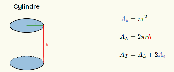 Pour calculer l'aire latérale d'un cylindre, on utilise la formule suivante :