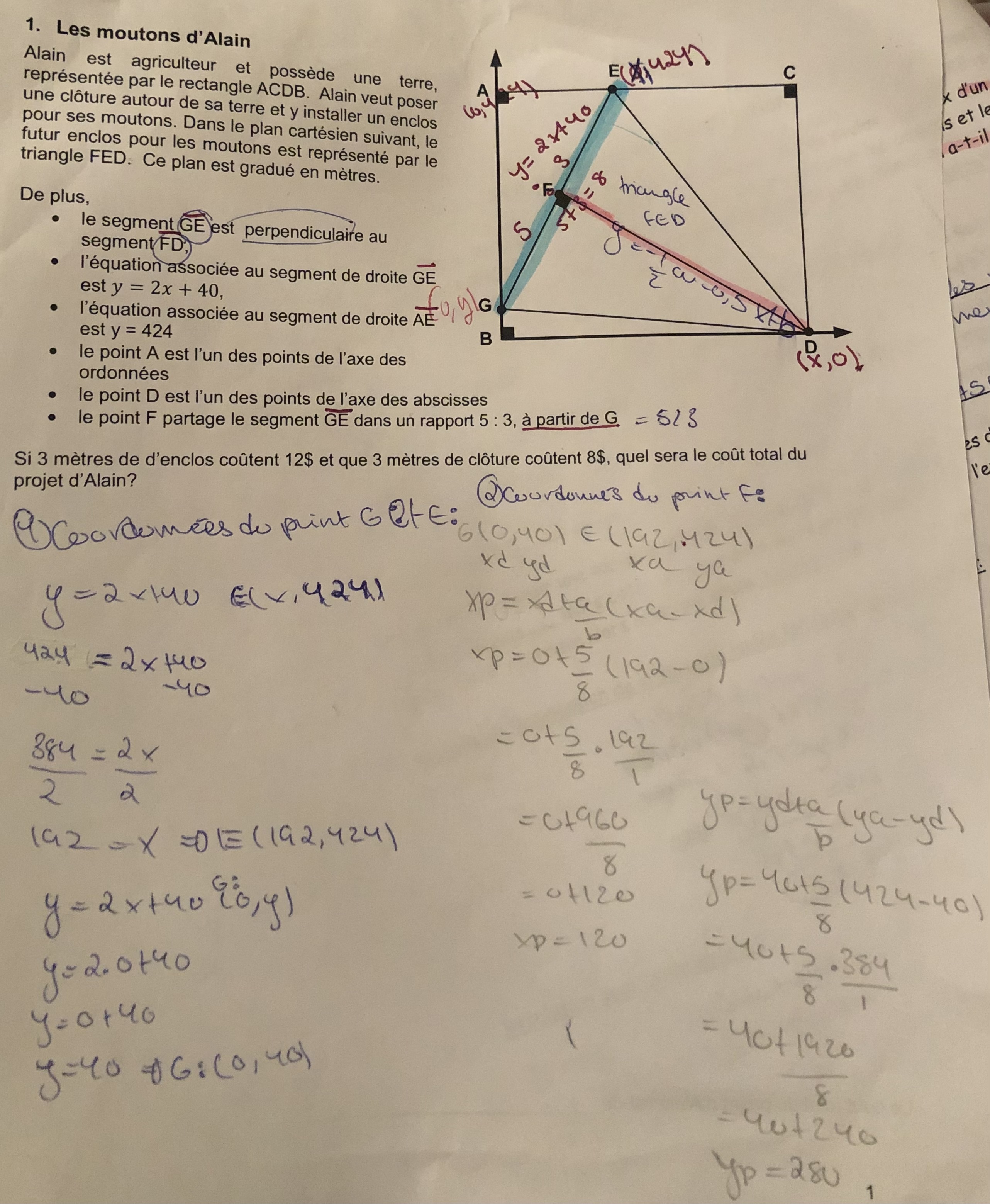 J’ai calculé les coordonnées du point F en utilisant la fraction 5/8 est-ce que c’est bon?