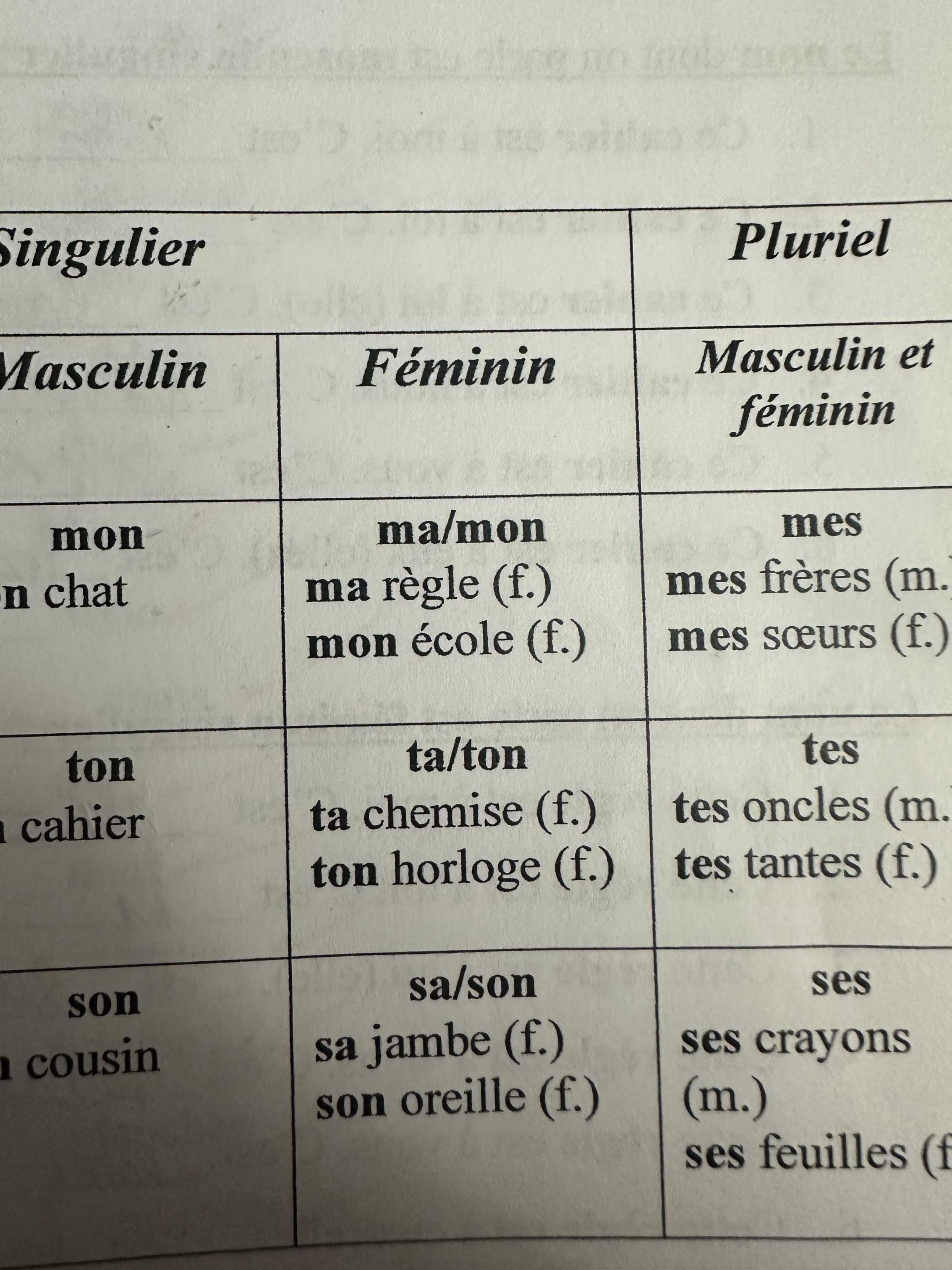 Pourquoi on met déterminant possessif masculin au nom féminin