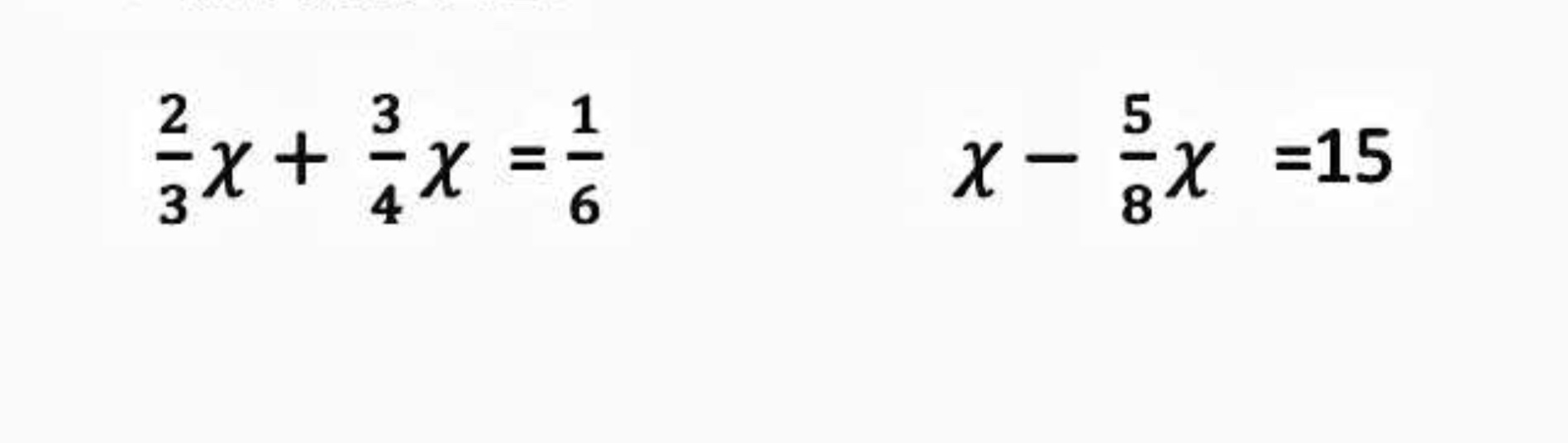 Commence par mettre tous tes nombres et tes expressions algébriques sur un dénominateur commun (12 à gauche et 8 à droite). Ensuite, fais l'addition à gauche et la soustraction à droite. Puis, simplifie tes expressions en enlevant les dénominateurs. Il ne te restera plus qu'à diviser tes expressions des deux côtés de l'égalité par le coefficient (le nombre multiplicatif à gauche de x) pour avoir ta réponse.