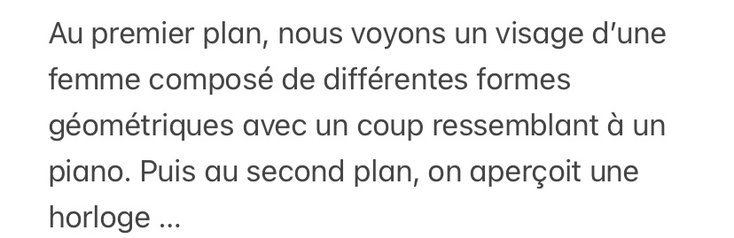 j’ai commencé à décrire cette œuvre mais j’ai du mal à trouver les mots pour la décrire car l’œuvre contient beaucoup d’éléments donc si vous pouvez m’aider à compléter ma description sa serait chouette.