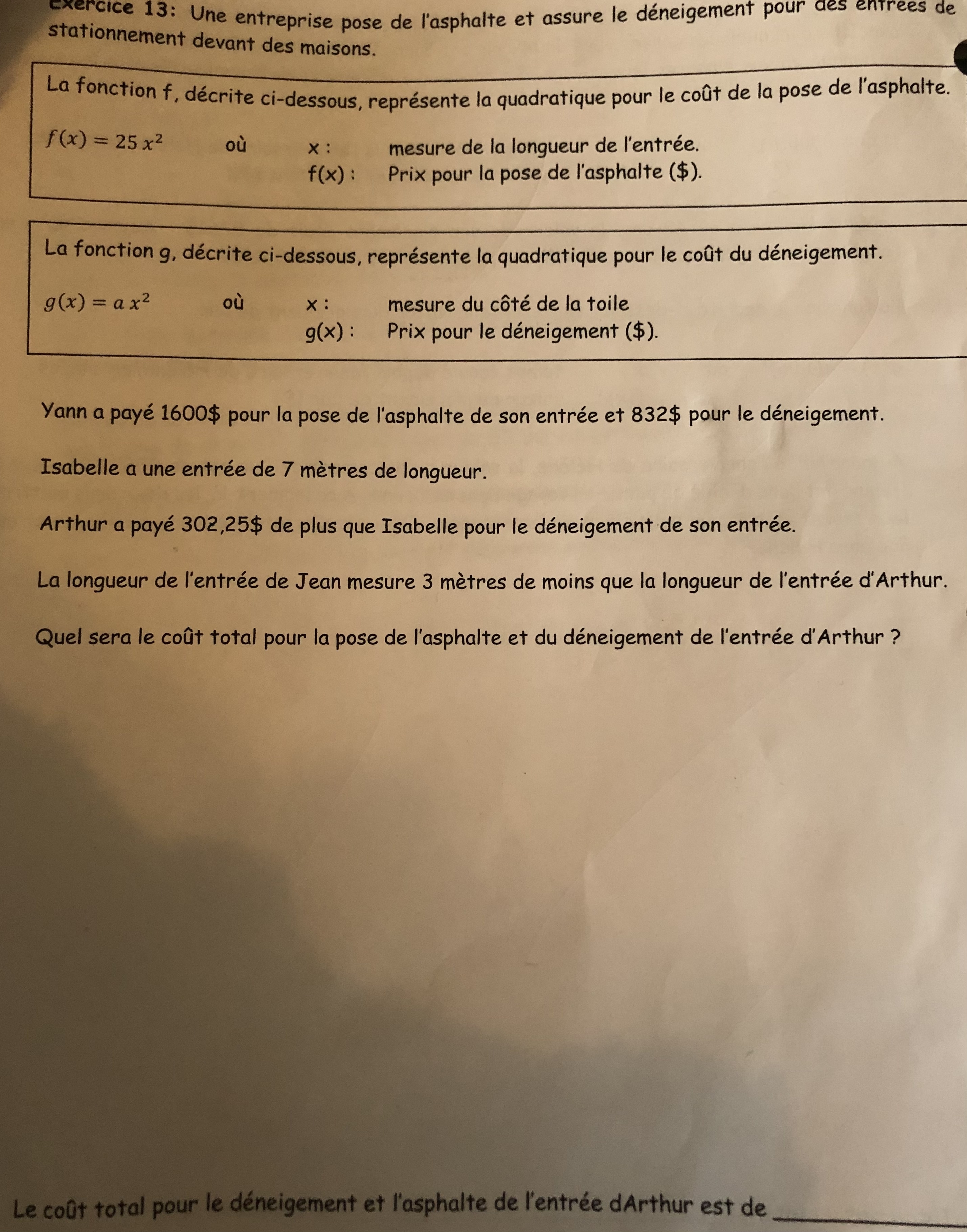 Dans cet exercice, tu dois construire des équations. Je te conseille de faire un tableau avec le nom de chaque personne, puis de trouver si tu as le x, le f(x) ou une équation pour chacune d'elle.