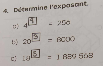 Est-ce qu'il y a une fonction de la calculatrice pour déterminer quel est l'exposant ou quel est la base ? Merci !