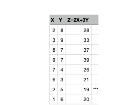 En calculant la valeur de la fonction z pour les couples de nombres entiers proche des sommets du polygone de contrainte, j'obtiens effectivement (3,6) comme solution pour la valeur minimale de la fonction en a)