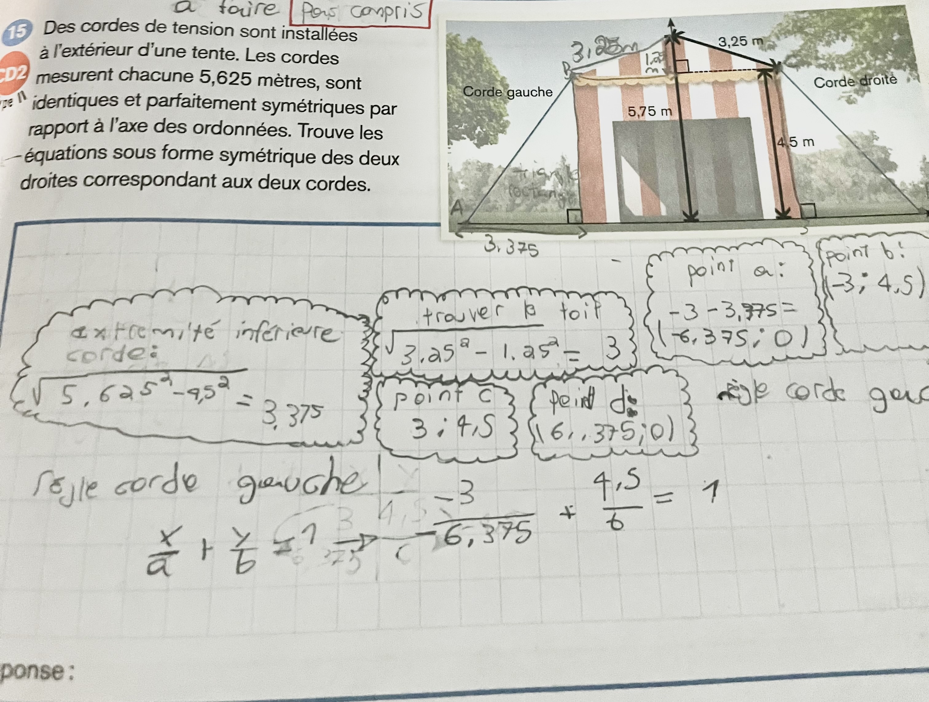 je suis bloqué a l'étape de trouver l'ordonnée a l'origine de la corde gauche