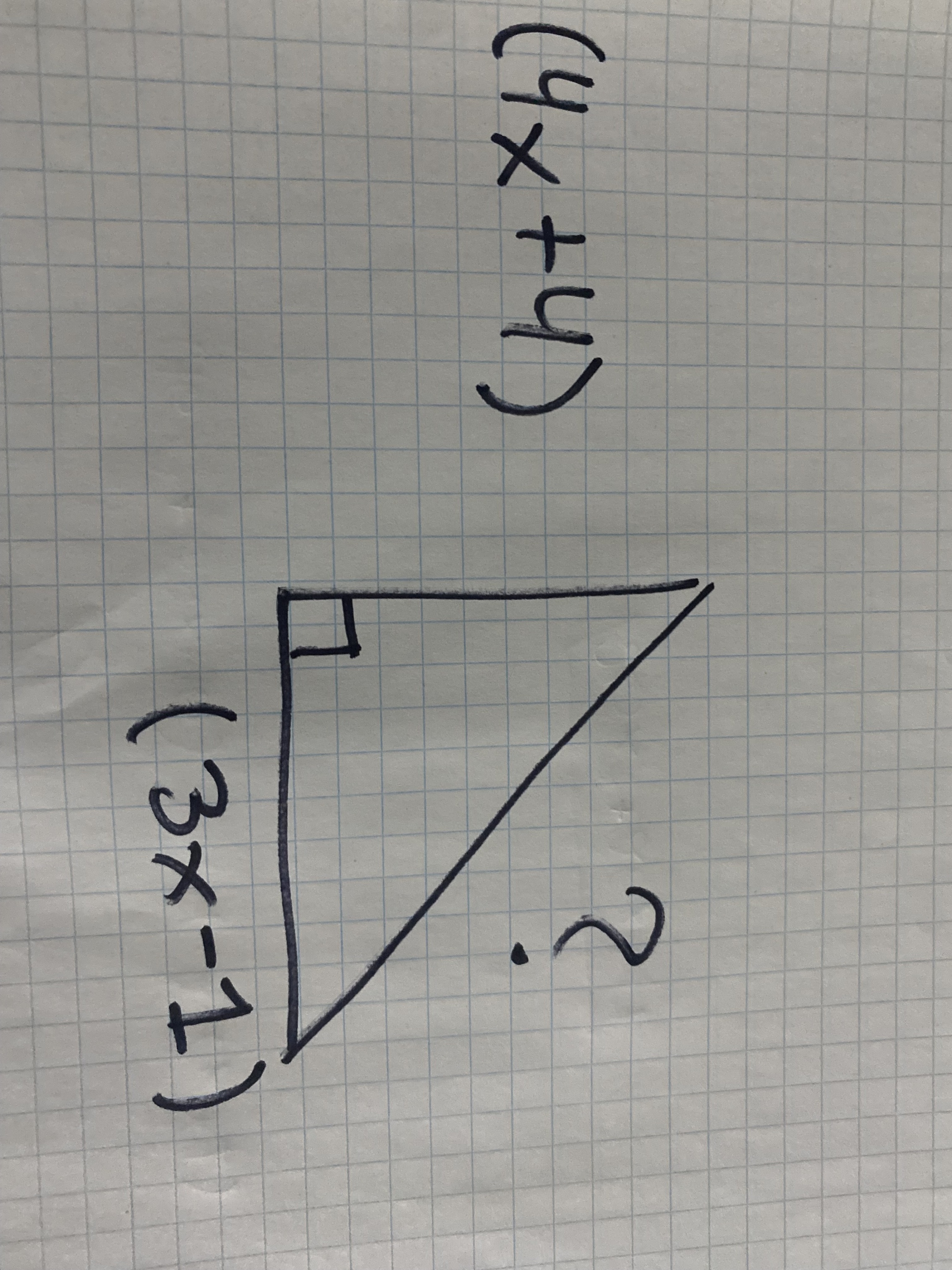 Ici, tu devras utiliser les expressions algébriques données afin de pouvoir exprimer la mesure de l’hypoténuse sous forme d’expression algébrique, également.