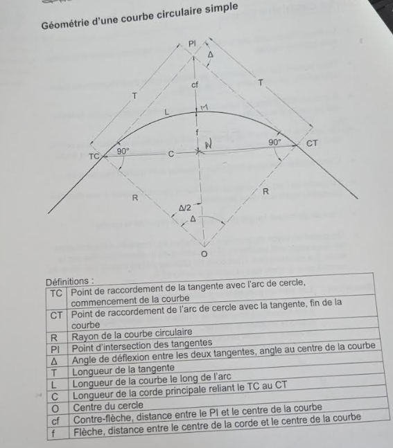 le contexte : c'est de calculer le rayon de deux courbes au PI1 et l'autre courbe est au PI2.