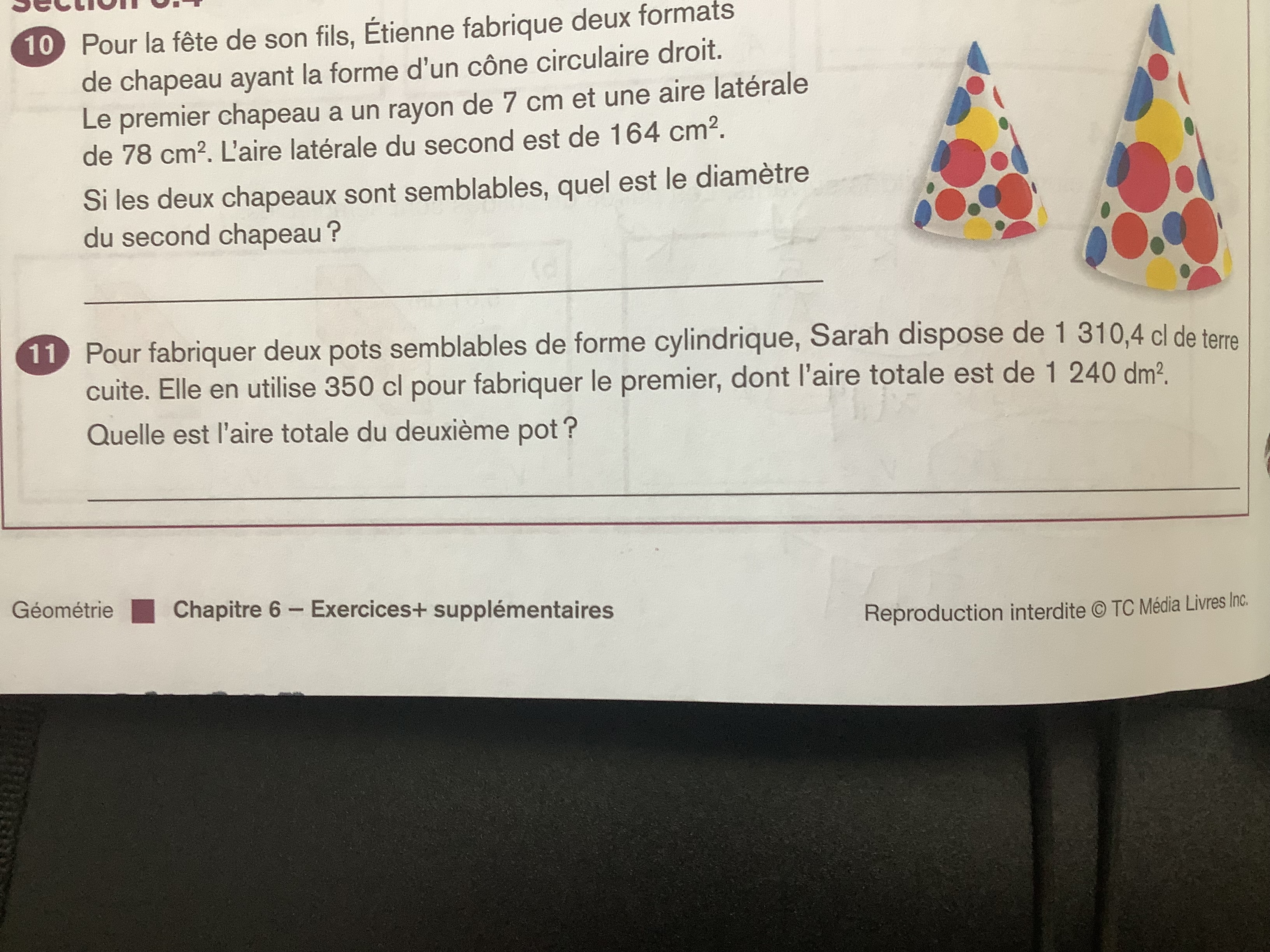 On te dit qu'elle utilise 350 cl des 1310,4 cl de terre pour fabriquer le premier pot. Tu peux alors calculer la quantité restante de terre que Sarah utilisera pour fabriquer le second pot.