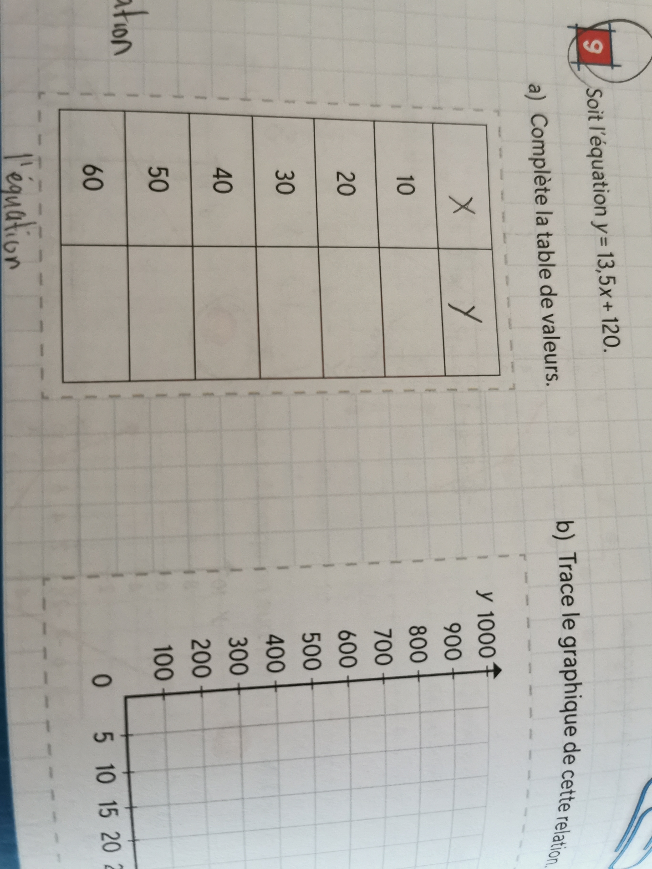 ex : pour x = 10, et avec la formule y = 13.5x + 120, si on remplace x dans la formule :