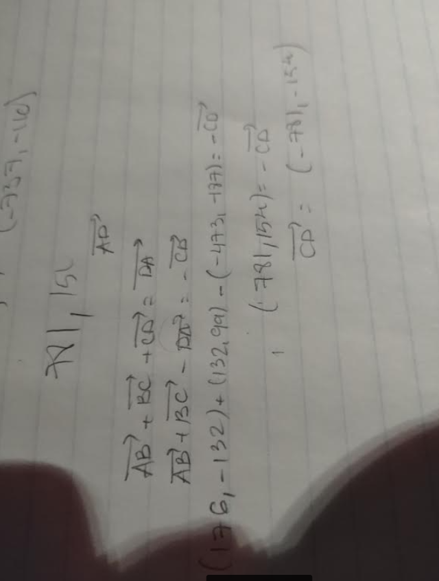 Dans cette situation probleme (correction en a page 2) je ne comprends pas l etape composantes du vecteur AD et l'etape composantes du vecteurs CD , je comprend pas pourquoi les composantes de AD sont de signes opposés