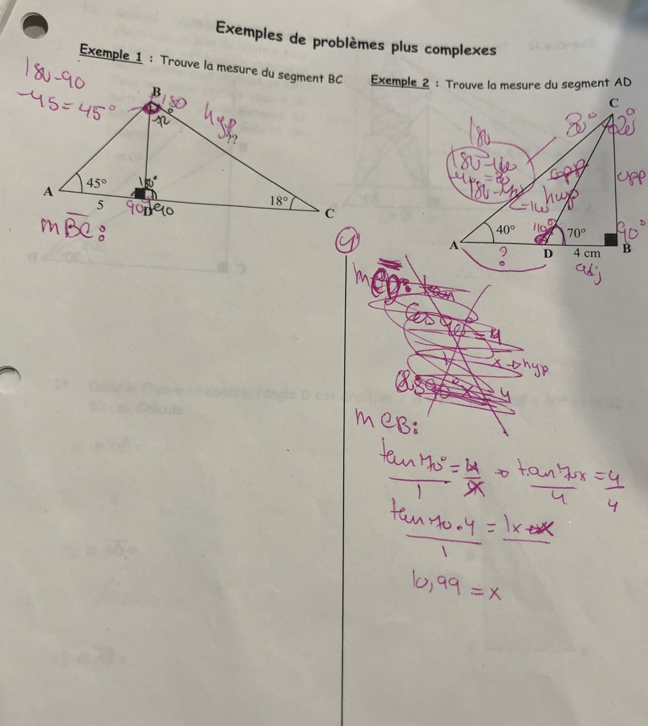 Il te donnera 45 degrés. Ensuite, grâce à la loi des sinus, tu pourras trouver la valeur du segment BD grâce à la valeur du segment AD, qui est de 5.