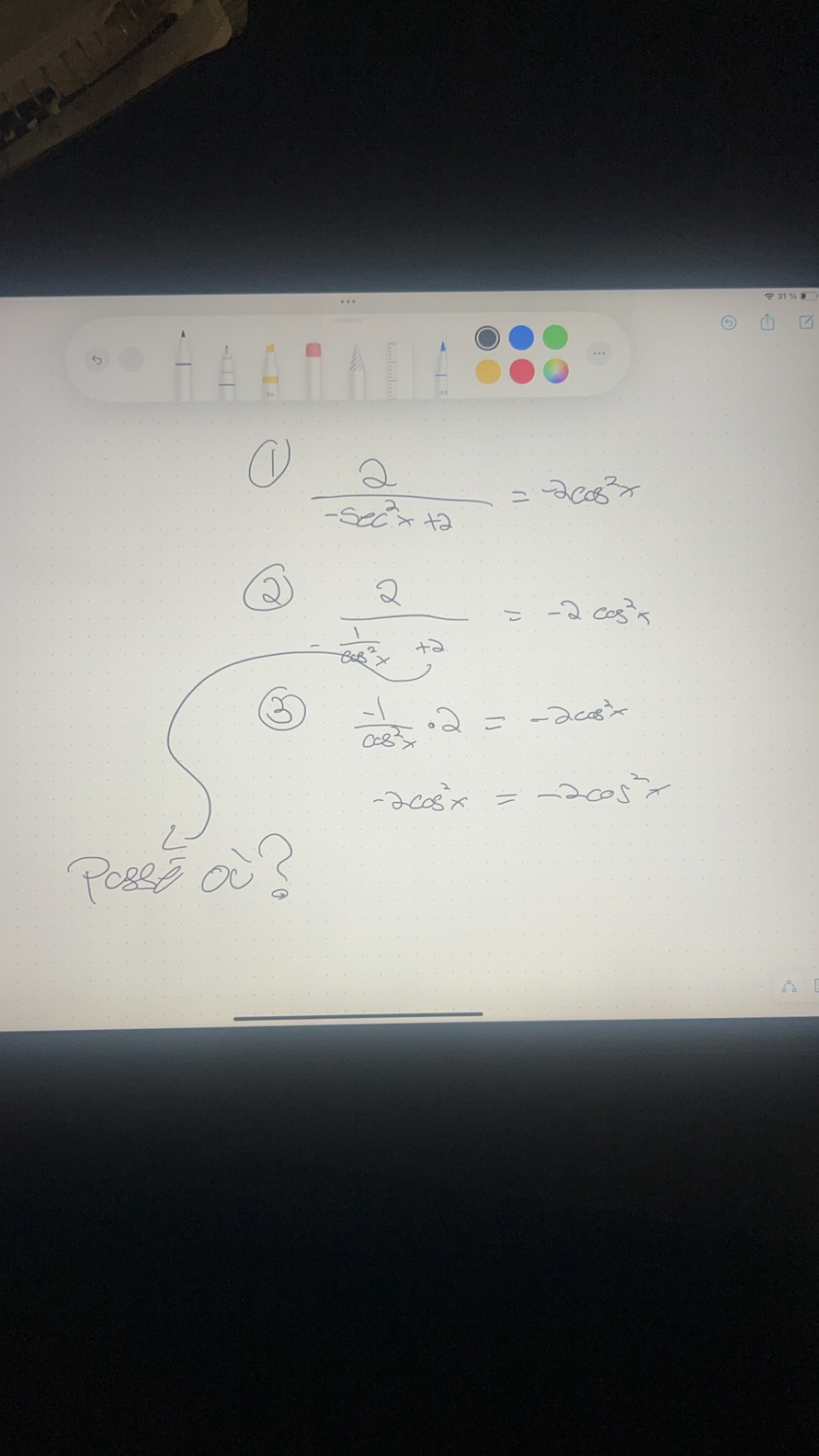 Salut à tous , je dois résoudre cette identité trigo et je regardais le corrigé car je ne trouvais pas comment faire mais question est la suivante entre l’étape 2 et 3 le +2 est passé où merci