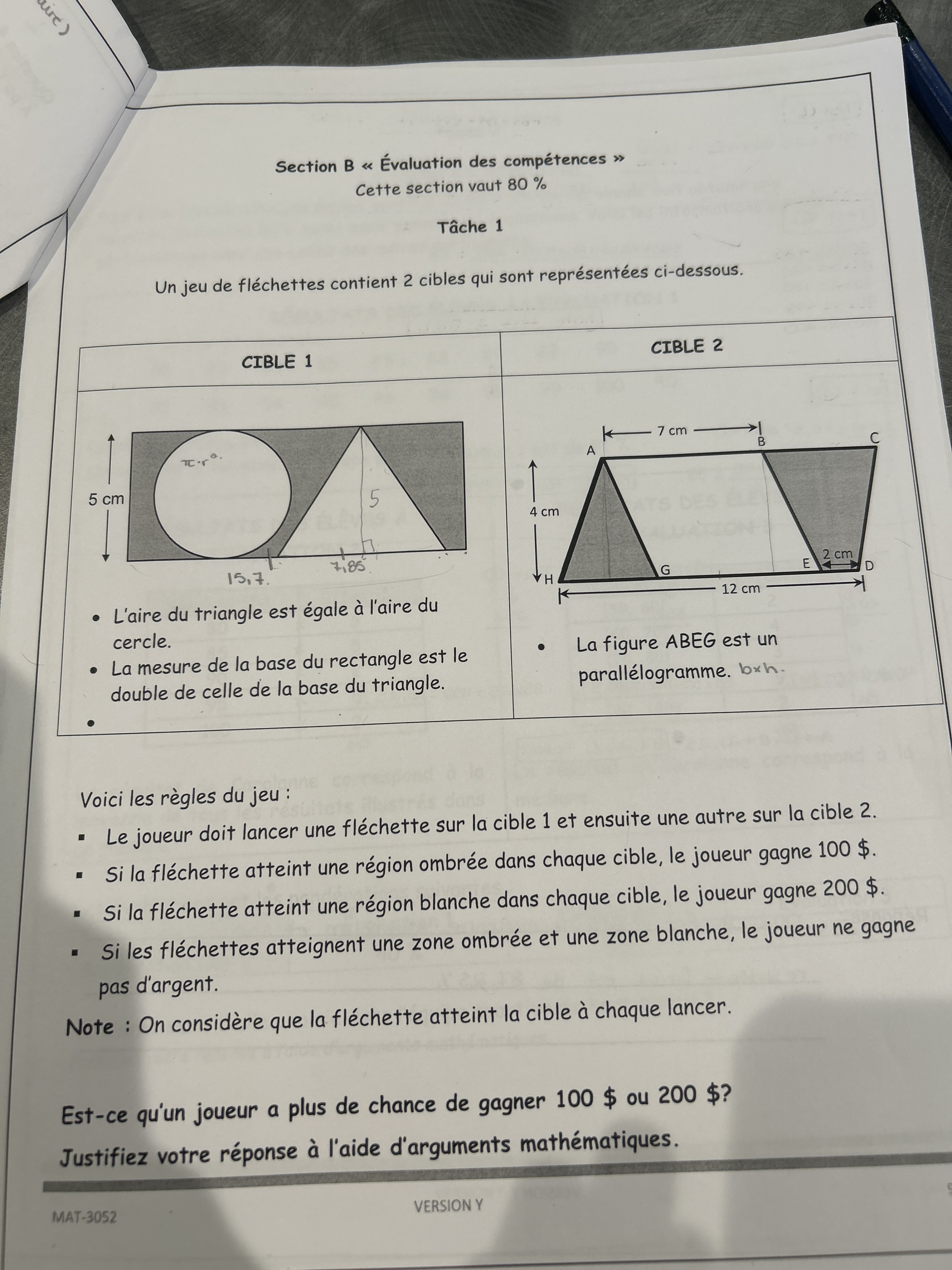 Pour la mesure GH, en fait, comme c'est un parallélogramme régulier, on peut en déduire qu'il y a deux paires de côtés isométriques. Cela veut dire que le segment GE est égal au segment AB! On sait donc que le segment GH correspond à 12-7-2, donc 3cm! :)