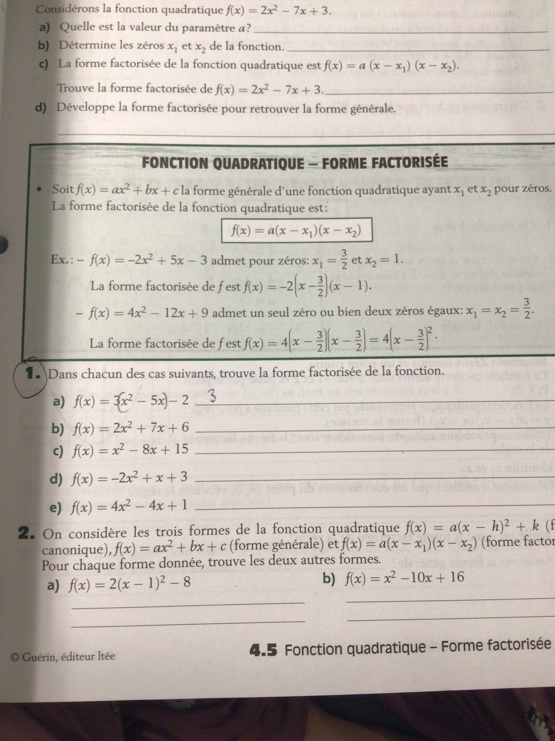 Je ne comprends pas comment factoriser la fonction quadratique.