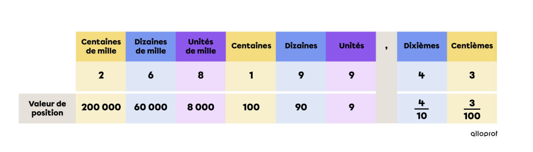 Dans cet exercice on te demande de travailler la valeur de la position. C'est-à-dire que la valeur d’un chiffre est différentes selon selon sa position.