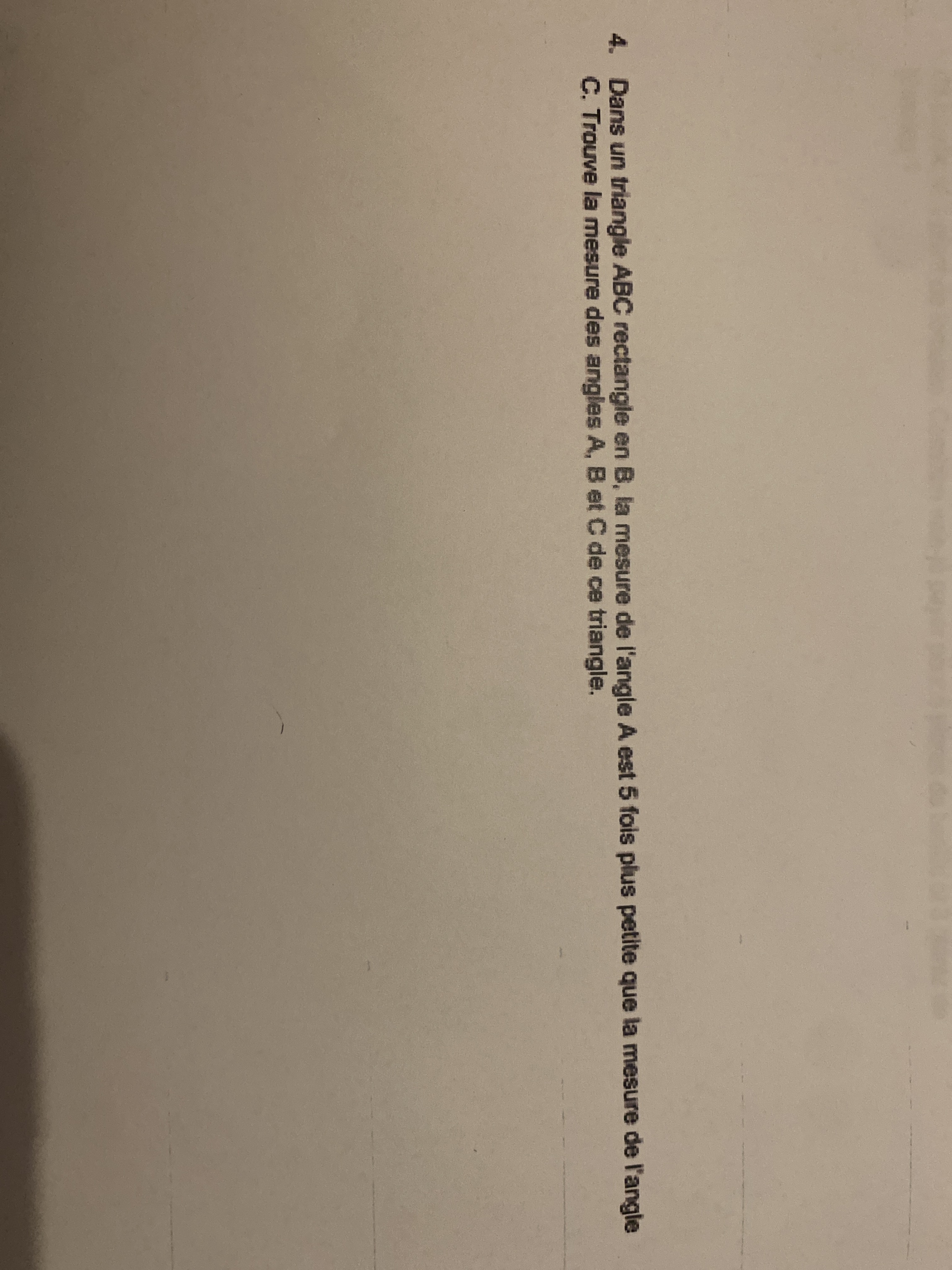 De ce fait, essaye de trouver des relations que tu pourrais utiliser pour ton problème. Ici nous savons que c'est un triangle rectangle en B. Donc, la mesure de l'angle b est de 90°. De plus, nous savons aussi que la somme des angles dans un triangle rectangle est de 180°. Voilà, nous avons trouvé nos 2 équations manquantes. Il ne reste plus qu'a les écrire sous forme d'équation et de résoudre.