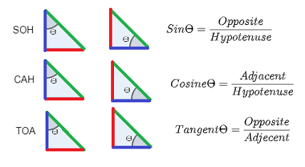 Maintenant, pourquoi sinus pour x, pourquoi cosinus pour y? C'est une question de trigonométrie dans le triangle rectangle! Ce n'est pas toujours sinus pour x et cosinus pour y, ça dépend de l'angle que l'on utilise! Il faut se rappeler notre truc : SohCahToa!