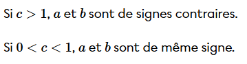 Donc, les paramètres sont : c=e≈2.71828, a=-5 et b=-2. Puisque c est supérieur à 1 et que a et b sont de même signe, alors la fonction est croissante.