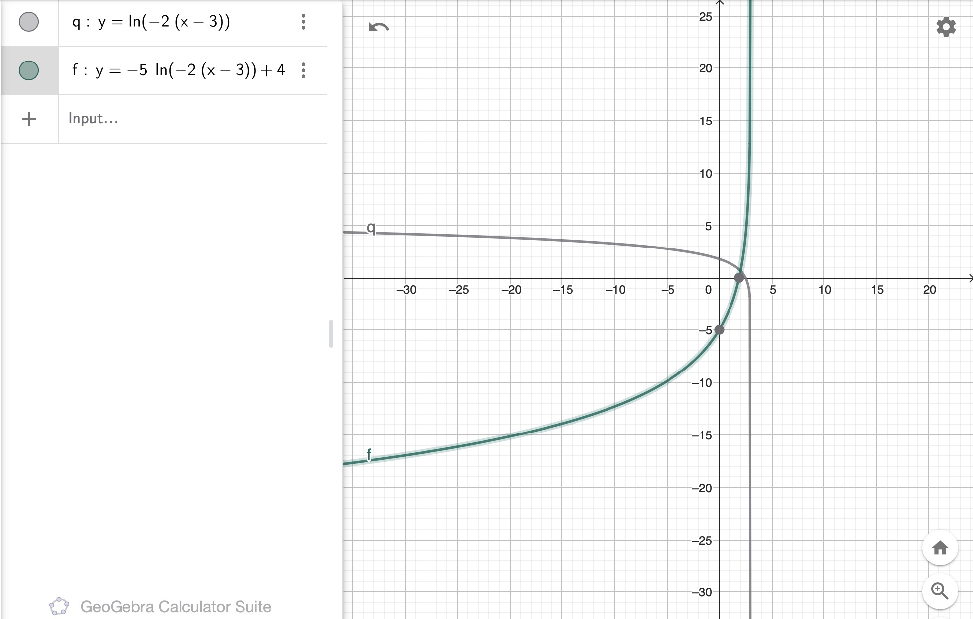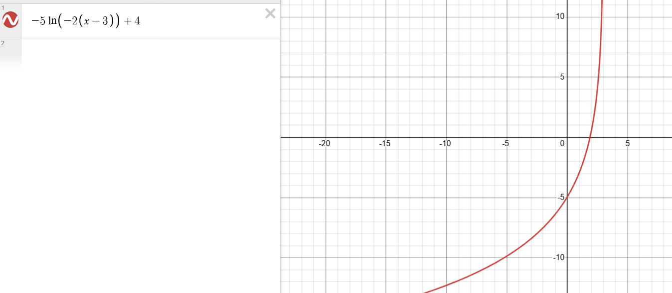par contre comme on multiplie le log par -5 cela veut dire que plus x diminue plus -5ln (-2(x-3)) + 4 diminue ce qui est équivalent à dire que lors que x augmente -5ln (-2(x-3)) + 4 augmente