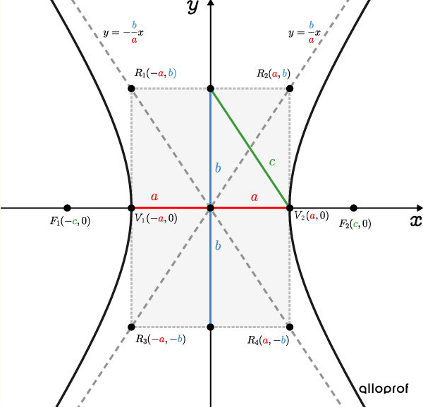 Once you have the equation of the hyperbola, the last step is to find the points of intersection between the geometric figures (the parabola and the rectangle), in order to determine the coordinates of points A, B, C, and D :)