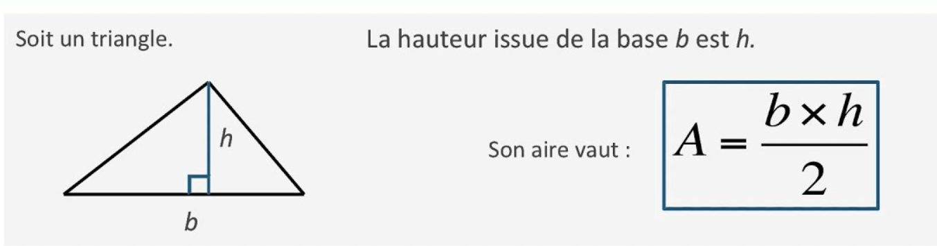 Puis, pour calculer l'aire, tu dois utiliser cette formule :