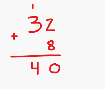 Maintenant tu peux te fier à cet exemple et résoudre 8+32 par toi-même!