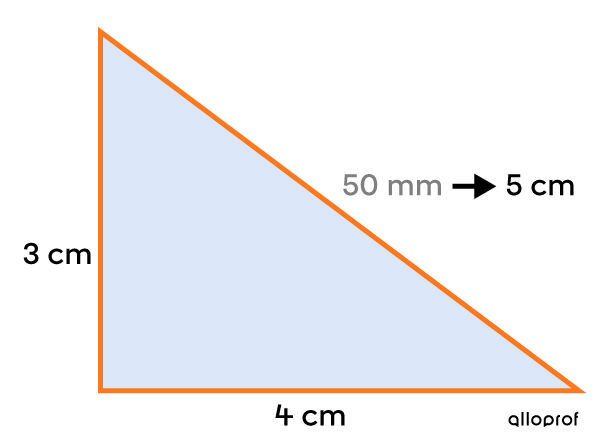 Par exemple, le périmètre de ce triangle est de 3 cm + 4 cm + 5 cm = 12 cm.