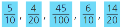 Nous avons ainsi transformé 4/20 en une fraction équivalente dont le dénominateur est 100. Tu dois faire cela pour toutes les fractions dont le dénominateur n'est pas déjà 100. Puis, tu pourras ordonner les fractions initiales pour trouver la plus petite fraction et la plus grande fraction.