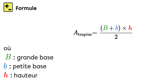 La formule utilisée pour calculer l'aire d'un trapèze est la suivante :