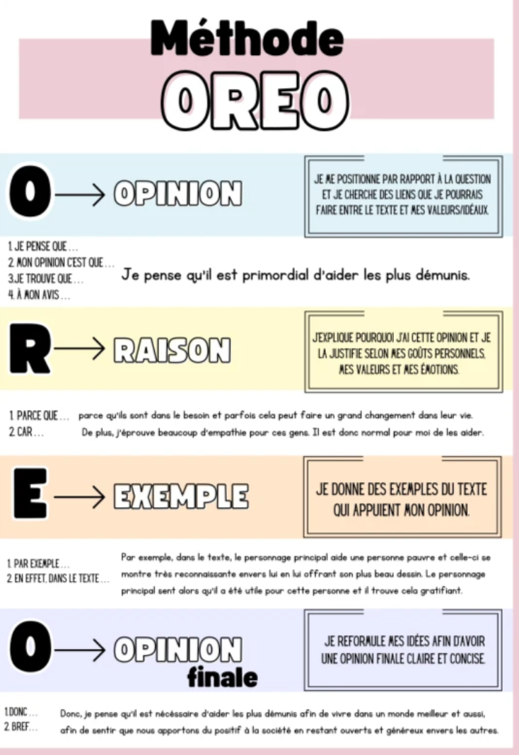 Je te propose le truc mnémotechnique suivant pour t’aider à répondre aux questions de lecture :