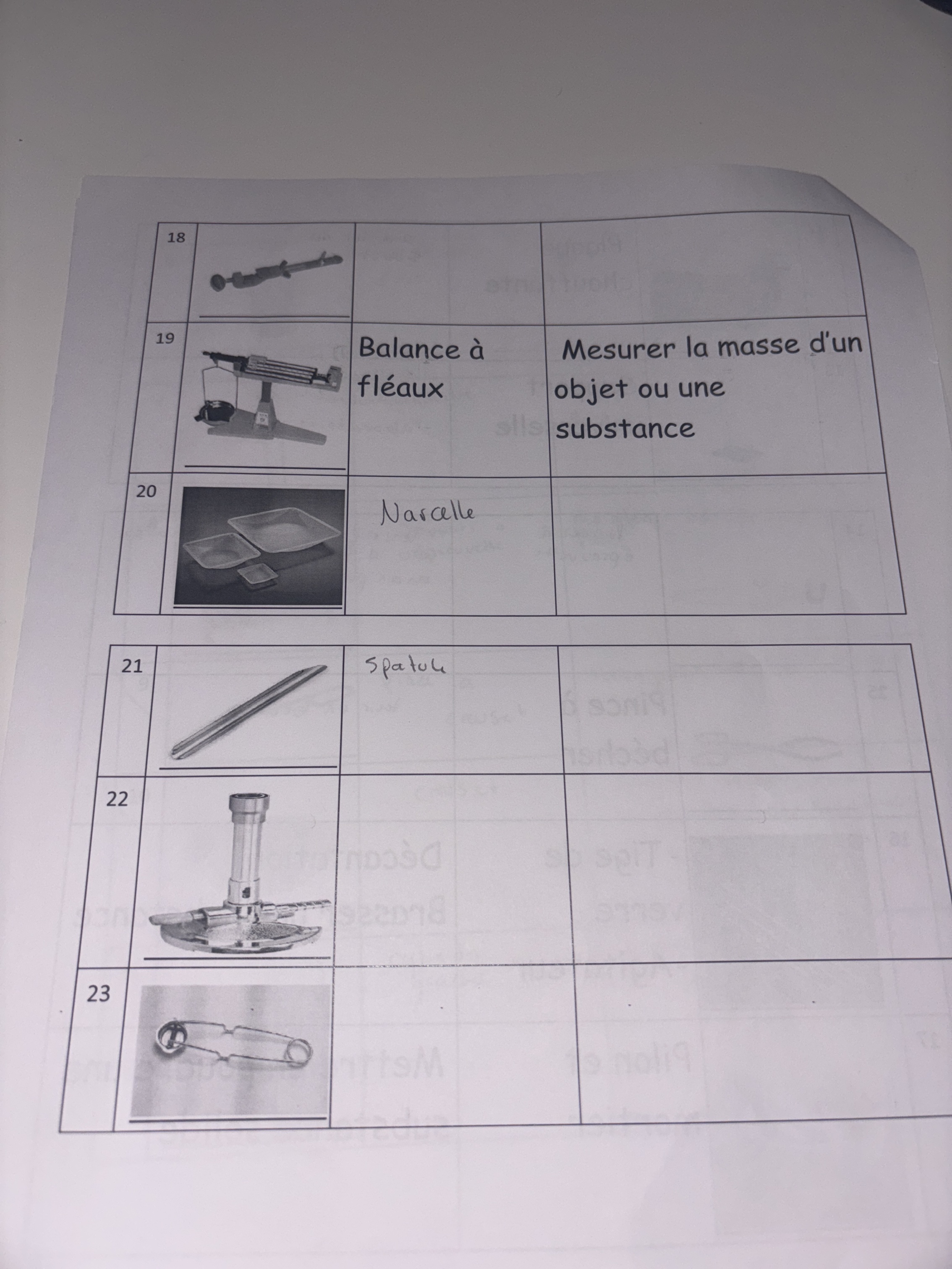 Secondary I • 1mo.je dois savoir comment s’appelle c’est instrument de laboratoire