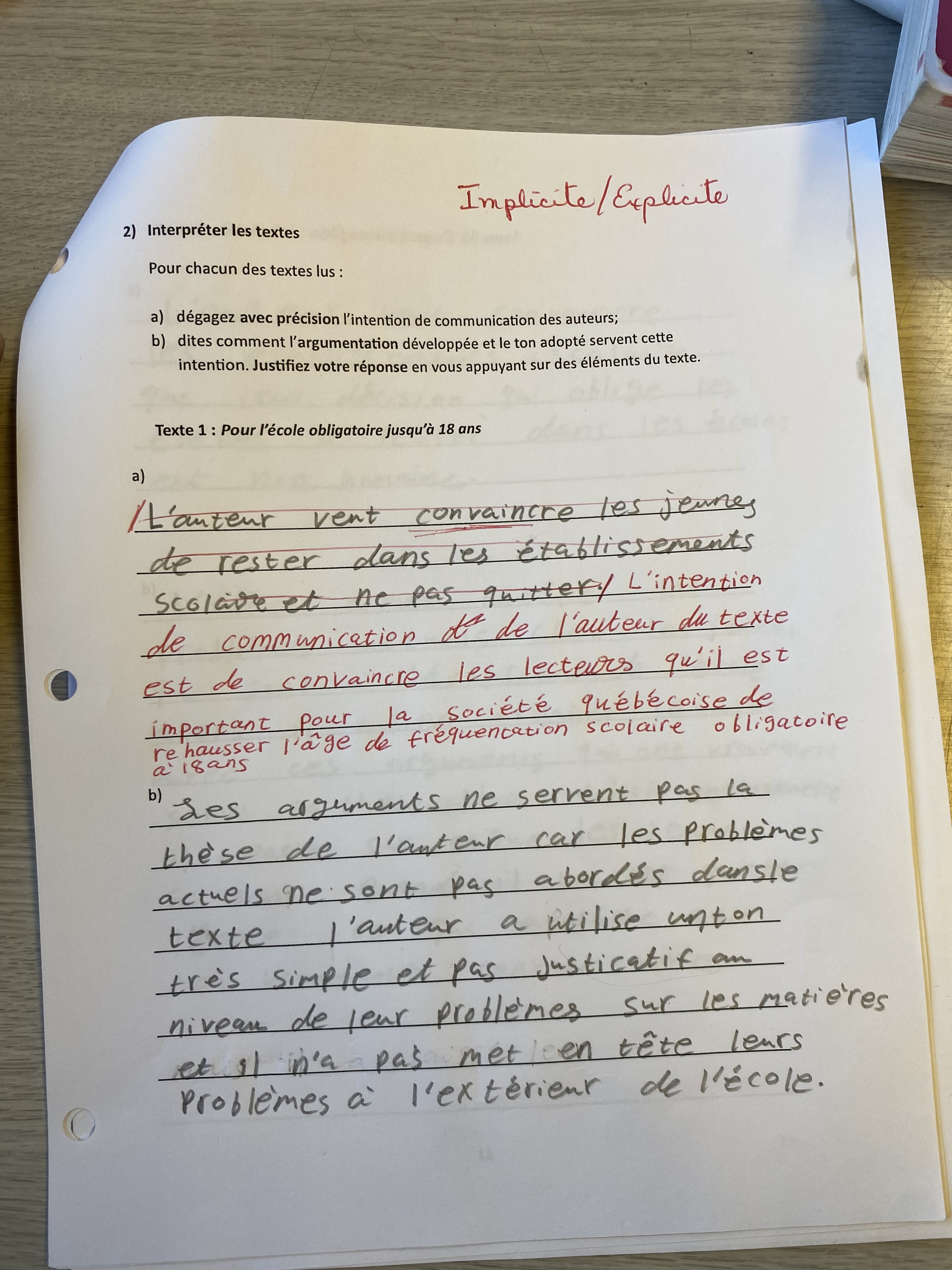 Secondary V • 1mo.je veux savoir c’est quoi une phrase implicite et explicite Qu’est Ca a de rapport ici