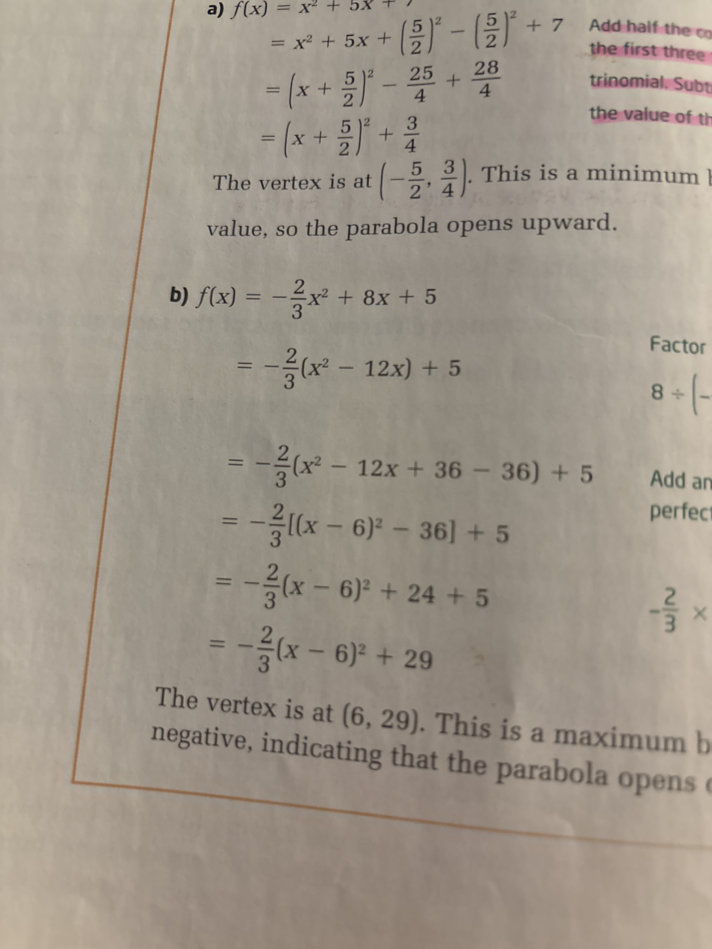 Secondary V • 2mo.Allo. ici, dans le carré parfait, je ne comprend pas pourquoi ils ont exclu le 5 lorsqu’ils ont fait la mise évidence de -2/3x^2