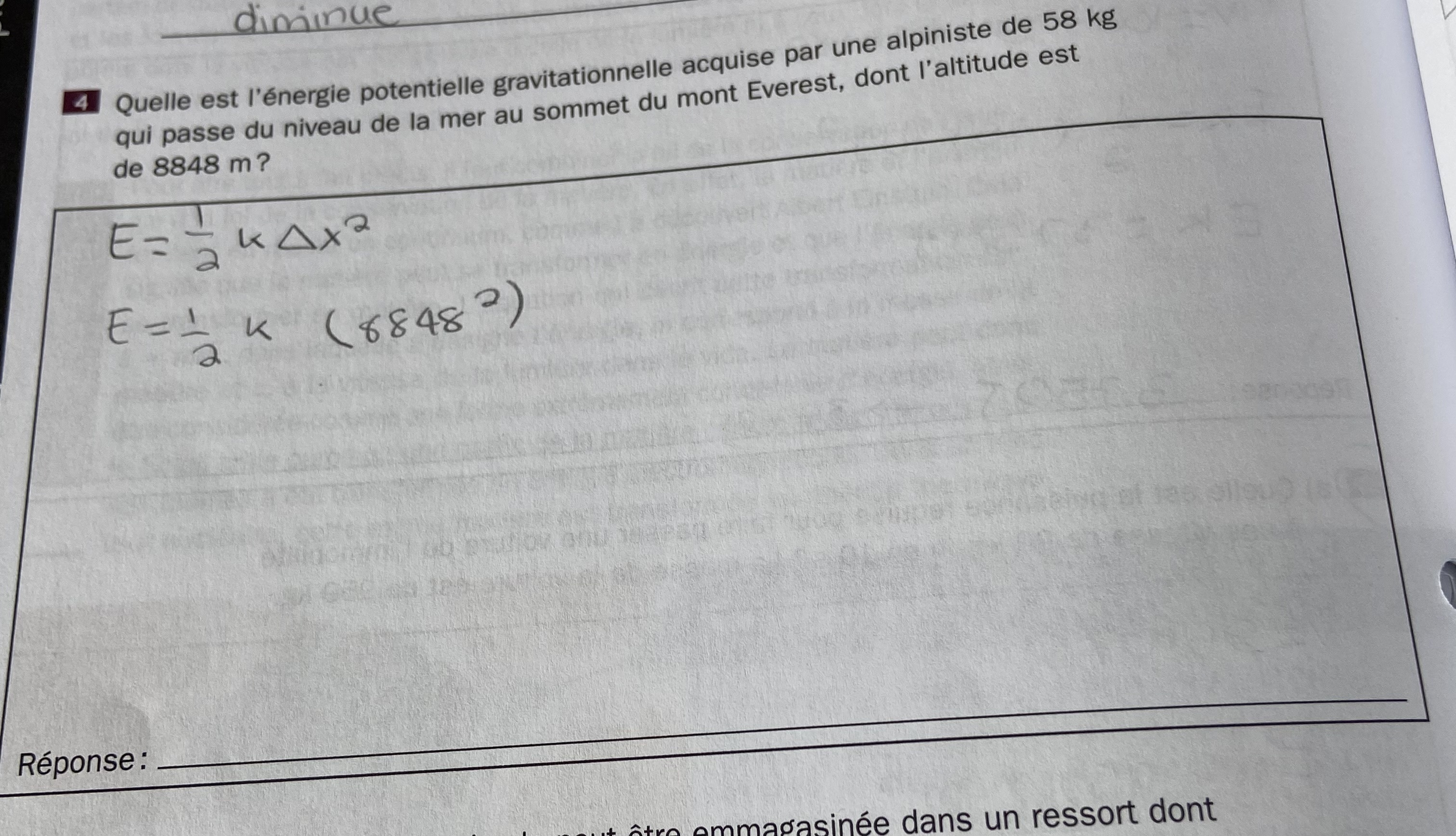 Secondary IV • 2yr.Bonjour! J'ai une question par rapport au question scientifique. Pourquoi il y a 2 situations? Est-ce que la deuxieme phrase se sert a trouver l'energie utile?