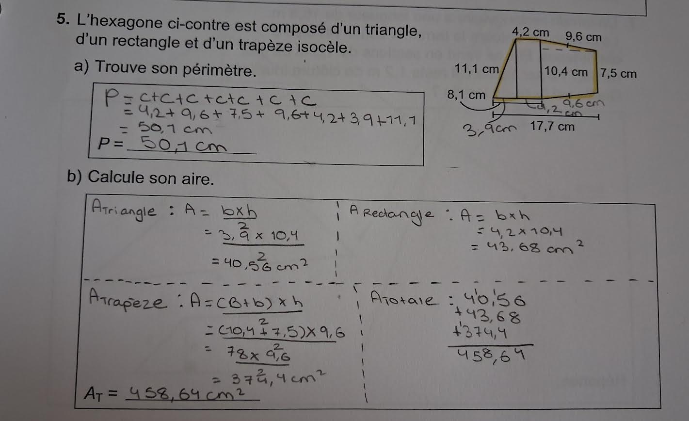 Secondaire 1 • 16hBonjour, j’aimerais aider ma fille à comprendre comment trouver la mesure manquante (soit le “?”) et je ne comprend pas comment lui expliquer la logique pour y arriver