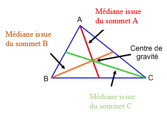 La médiane passe par un sommet et rejoint le côté opposé en le séparant en deux segments égaux.