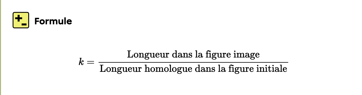 Ici, on t'indique que la figure (k) est le plus petit triangle. Ton rapport de similitude sera donc k= longueur du petit triangle/ longueur du grand triangle.