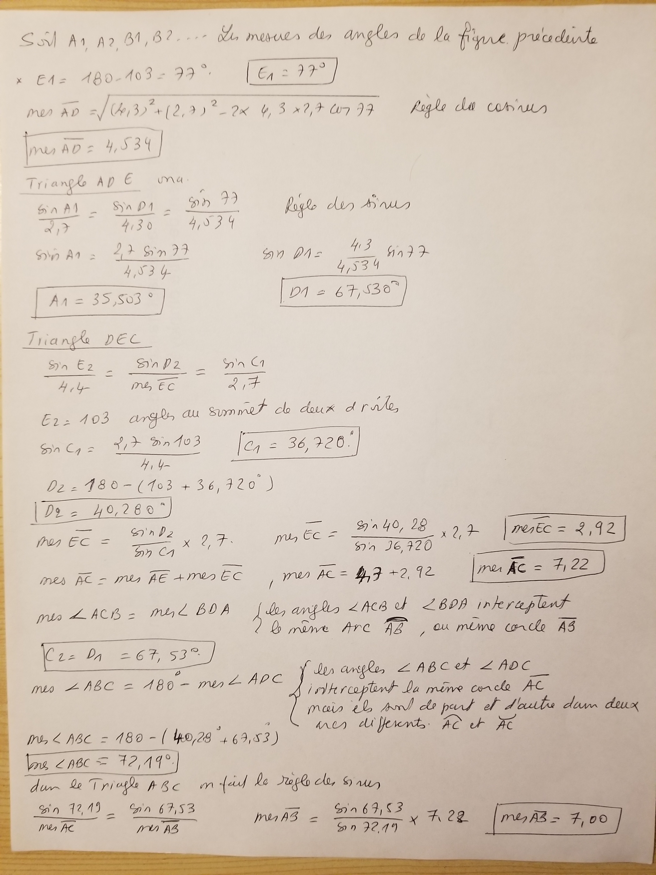 Puisqu'il faut reproduire le croquis sur le plan cartésien, ne faudrait-il pas connaitre les mesures du terrain, dont l'hypoténuse du triangle ?