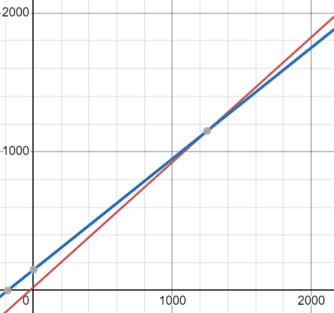 Par exemple, si le point d'intersection est à x=1400, cela signifie que pour 1400 sacs achetés, les deux compagnies offrent le même prix. Il faudra donc acheter 1399 sacs si on veut prendre le nombre maximal de sacs faisant en sorte que Sable en vrac est l'entreprise la moins chère.