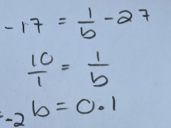 Puis, on nous donne 2 points de la fonction, soit (-17, 0) et (13, -2). On peut alors les insérer dans notre règle afin d'obtenir les deux équations suivantes :