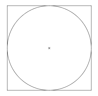 Un cercle inscrit dans un carré signifie que le cercle touche les quatre côtés du carré, comme ceci :