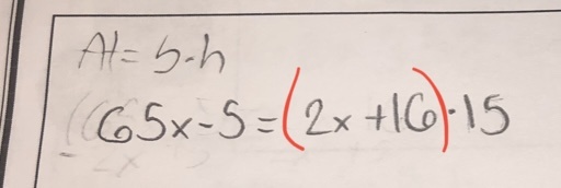Sans ces parenthèses, si on suit la priorité des opérations, on devrait seulement multiplier le 16 par 15, et non le 2x aussi, ce qui est faux! On veut multiplier toute la mesure de la base par la hauteur.