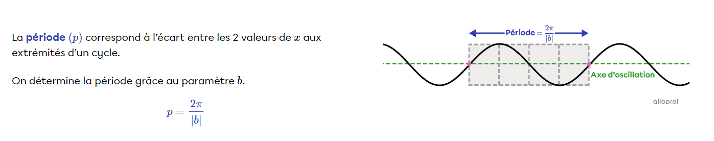 Pour trouver la période de la fonction, tu dois identifier le paramètre b de la règle :