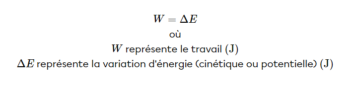 Tu peux trouver le travail par la différence d'énergie cinétique. Voici la formule :