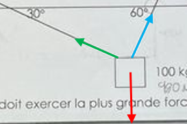 Comme tu sais que le système est à l'équilibre, la somme des forces est nulle en y (verticale) et x ( horizontale). La première étape est de dessiner les forces en jeu dans le système.