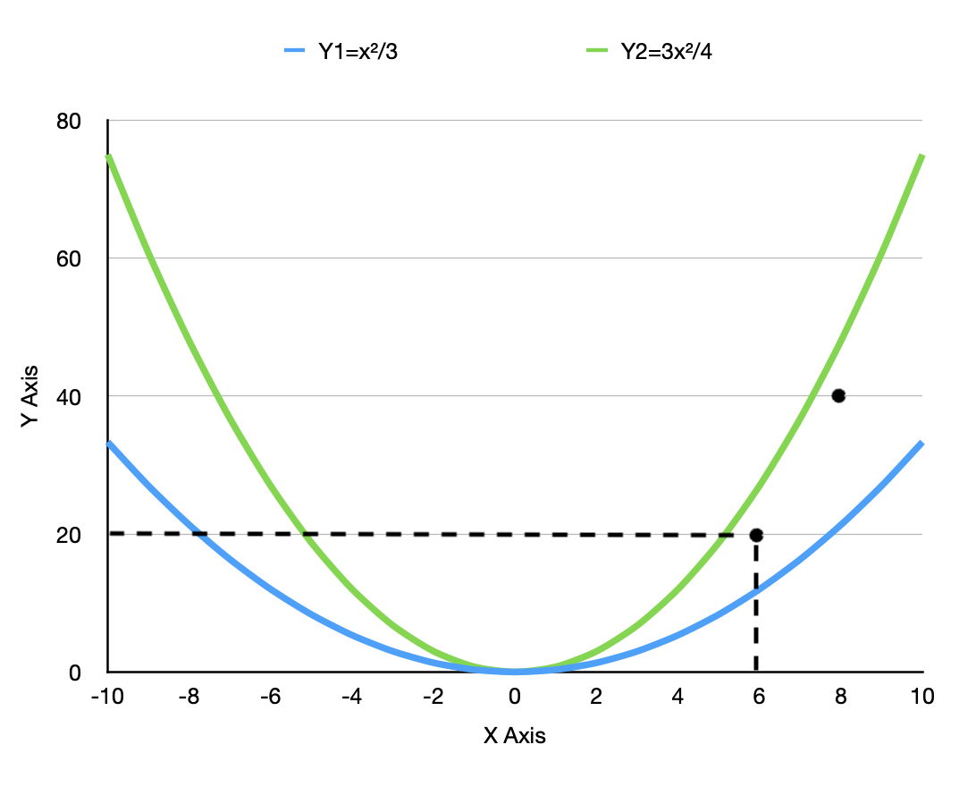 2y/x² < 1.5 ce qui revient à y < 3x²/4