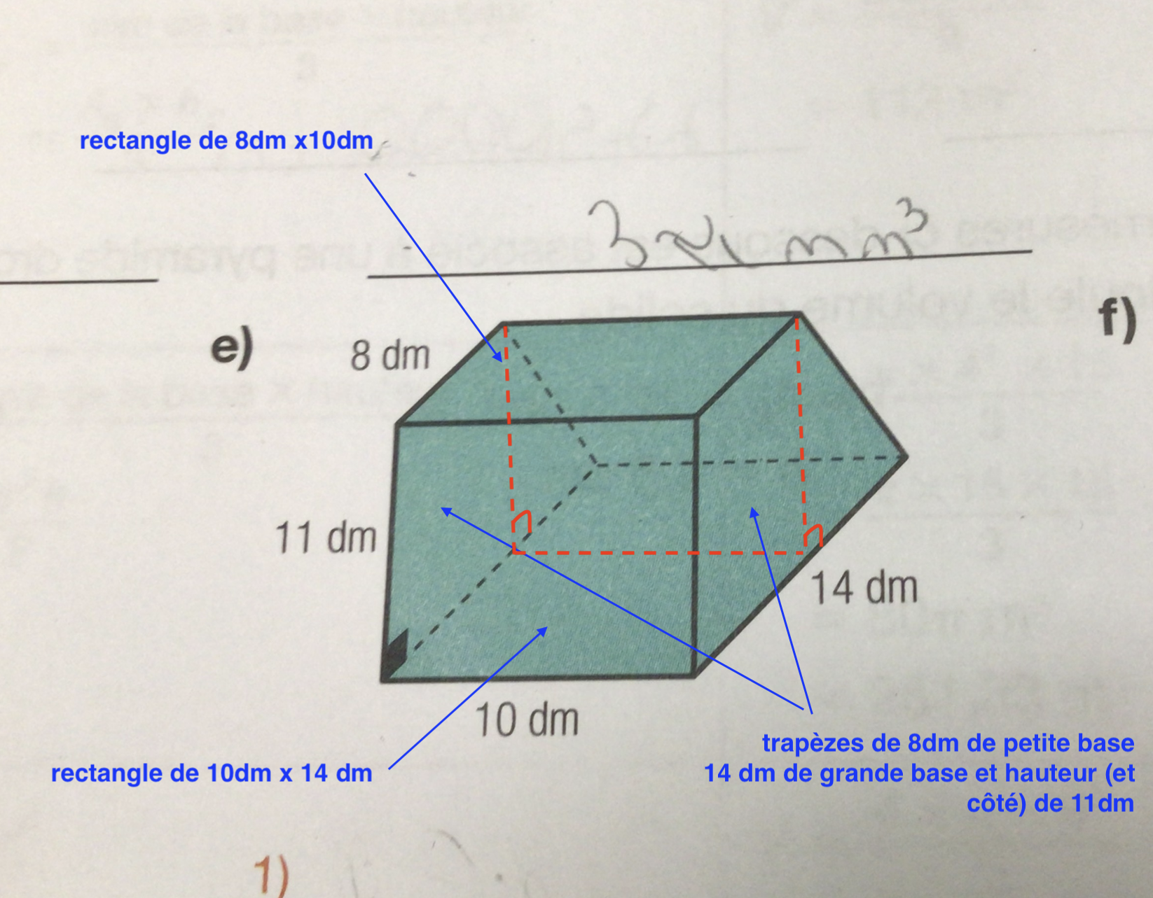 - le volume que tu peux calculer en deux temps, le volume d'une boîte (11dmx 8dm x 10dm) et le volume du prisme à base triangulaire