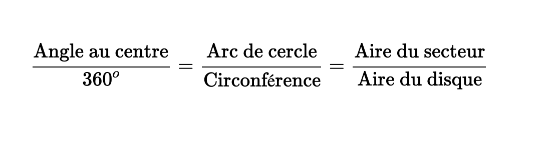 Note que si tu voulais connaître l'angle au centre en radians tu utiliserais 2π au lieu de 360º