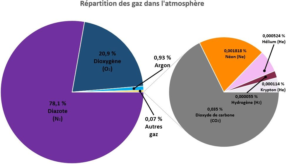 L'atmosphère est composée de plusieurs gaz répartis en différentes proportions.