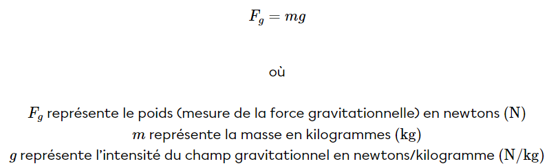 Tout d'abord, tu peux trouver le poids de l'objet avec la formule suivante :